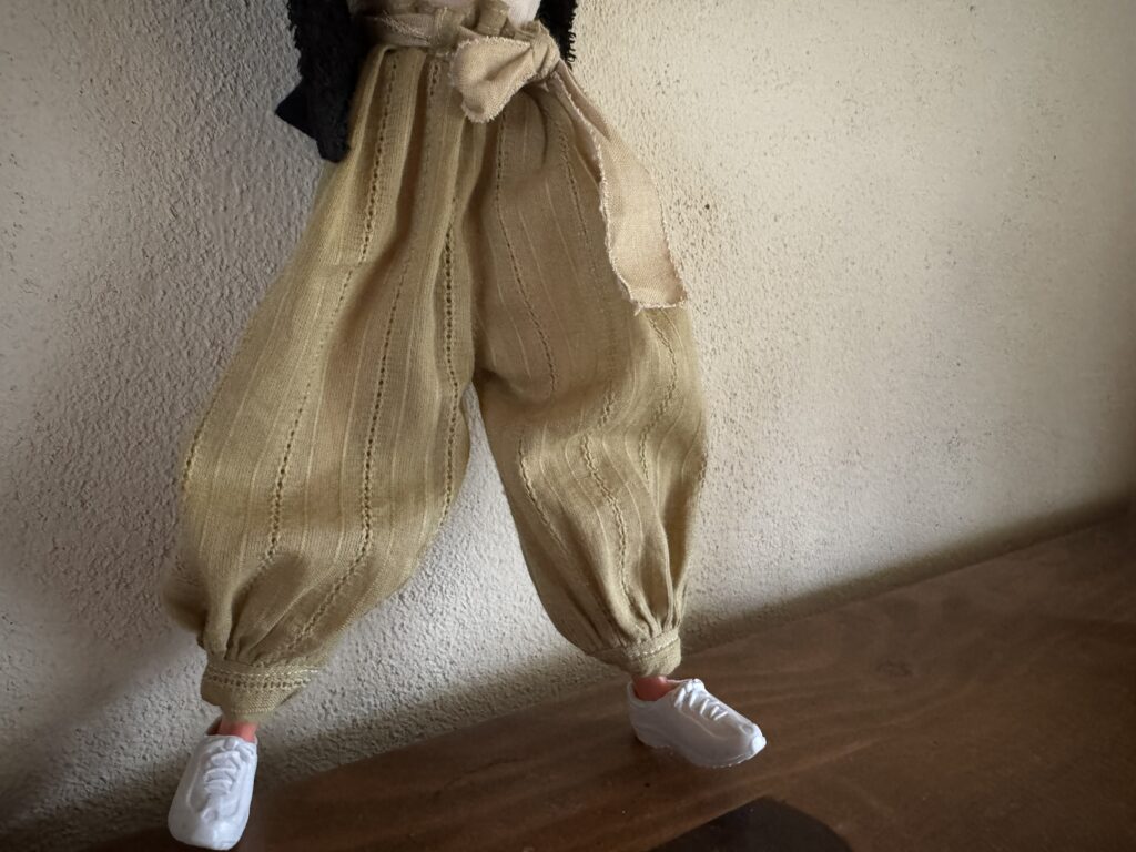 とりあえずありあわせの生地で、タンクトップと空気をまとったようなパンツを作ってみました。
